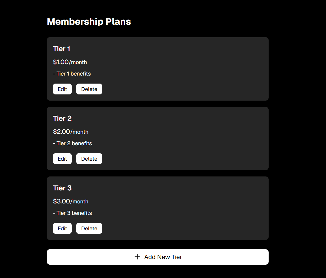 Members subscribe to your tiers; payouts are processed to your account via Stripe based on your payout setup.